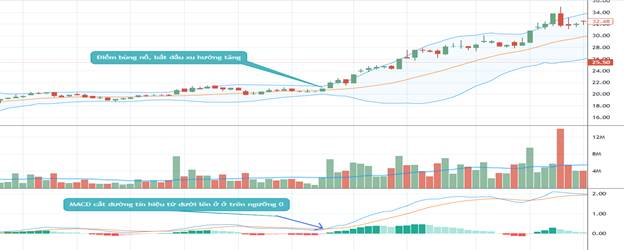 - Tín hiệu mua vào: MACD cắt đường tín hiệu từ dưới lên cho thấy xu hướng đang tăng, nên mua vào. Đặc biệt nếu điểm cắt ở trên đường 0 thì độ tin cậy càng cao.